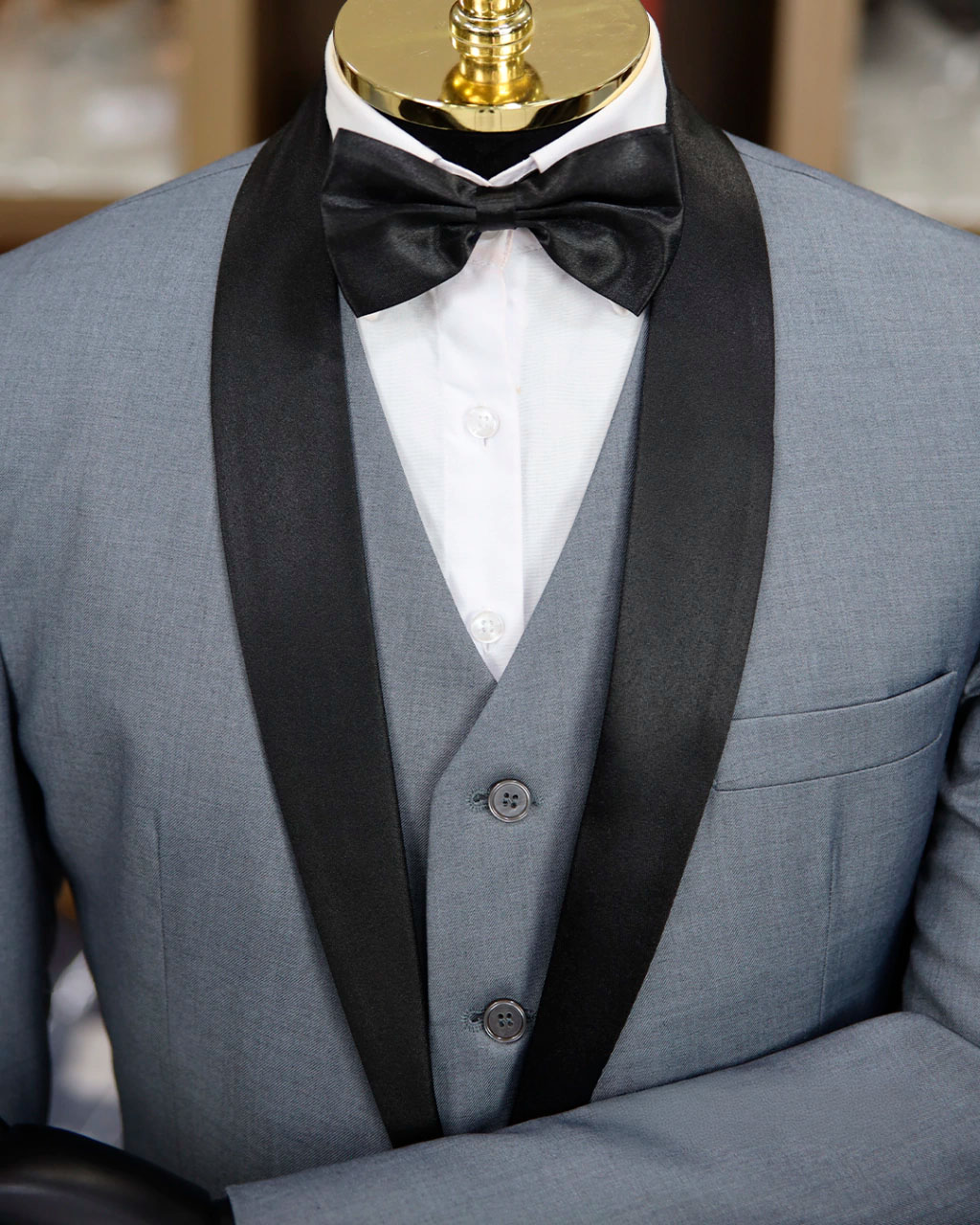 O Smoking Chumbo Encerado é uma peça imponente, que une modernidade e sofisticação com seu acabamento encerado exclusivo. Em um tom chumbo elegante, ele traz uma textura diferenciada e uma presença marcante, ideal para eventos noturnos e ocasiões que pedem um visual de impacto. Para o homem que deseja expressar estilo e personalidade, este smoking é a escolha perfeita.
