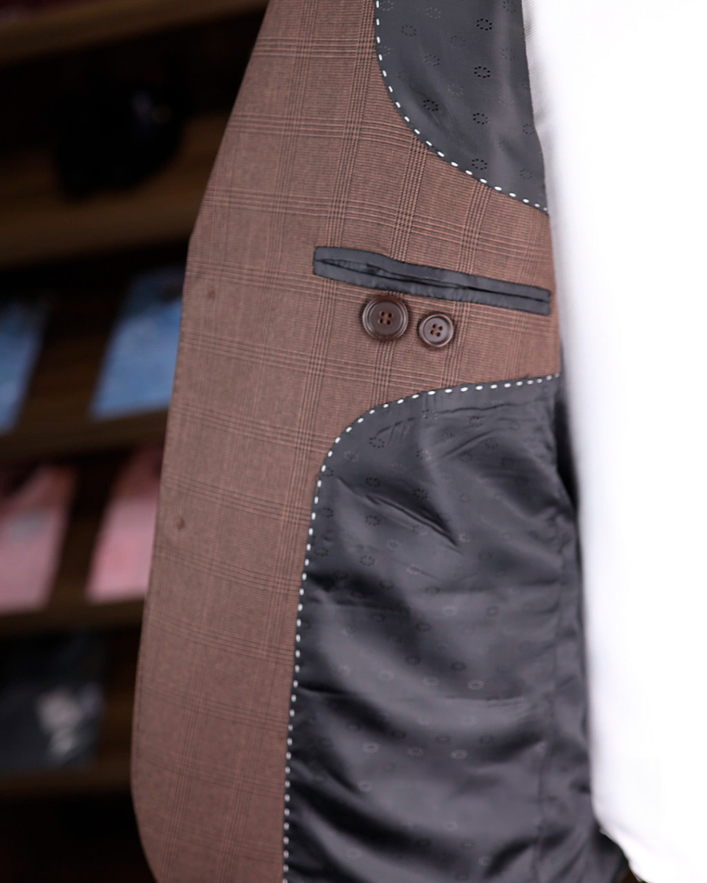 O terno marrom com detalhe em microfibra é a escolha ideal para quem busca uma aparência sofisticada e contemporânea. Com seu tom rico e profundo, ele exala elegância, enquanto os detalhes em microfibra oferecem um toque de modernidade e conforto. Perfeito para eventos formais e reuniões de negócios, garante um visual distinto e confiante.